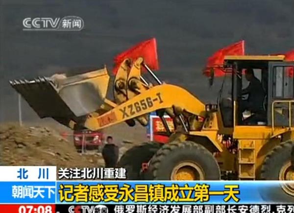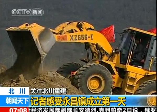 2010年2月3日早7:08分,央視新聞頻道的朝聞天下欄目,播出了汶川地震后第一個異地重建的新縣城---北川縣城所在地永昌鎮(zhèn)黨委、政府正式掛牌成立的報道,目前,北川的各項工程建設(shè)正在如火如荼的進(jìn)行中,其中在央視的報道中,廈裝XZ656-Ⅰ裝載機(jī)正在繁忙的作業(yè)中。據(jù)了解,我司的裝載機(jī)在汶川地震后的重建中發(fā)揮了重要作用。